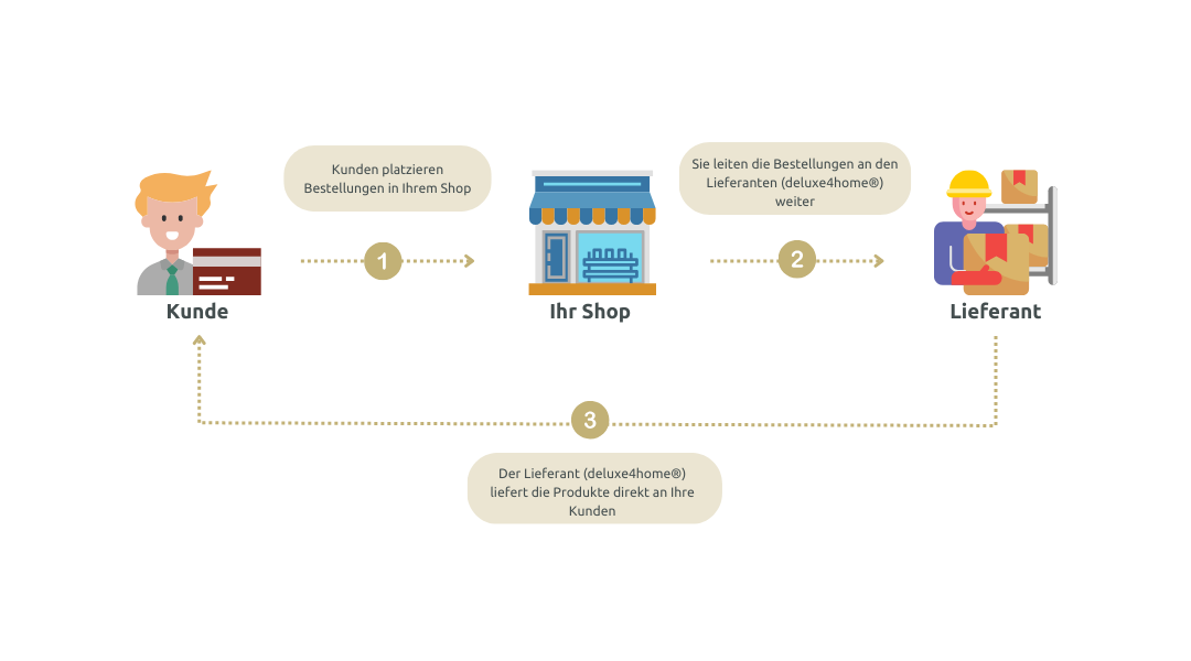 Profitieren Sie von geringem Risiko, einfacher Verwaltung und der Möglichkeit, Produkte in der gesamten DACH-Region anzubieten. Jetzt den ersten Schritt machen und über 400 deluxe4home® und holz4home® Produkte in Ihrem eigenen Online-Shop verkaufen.